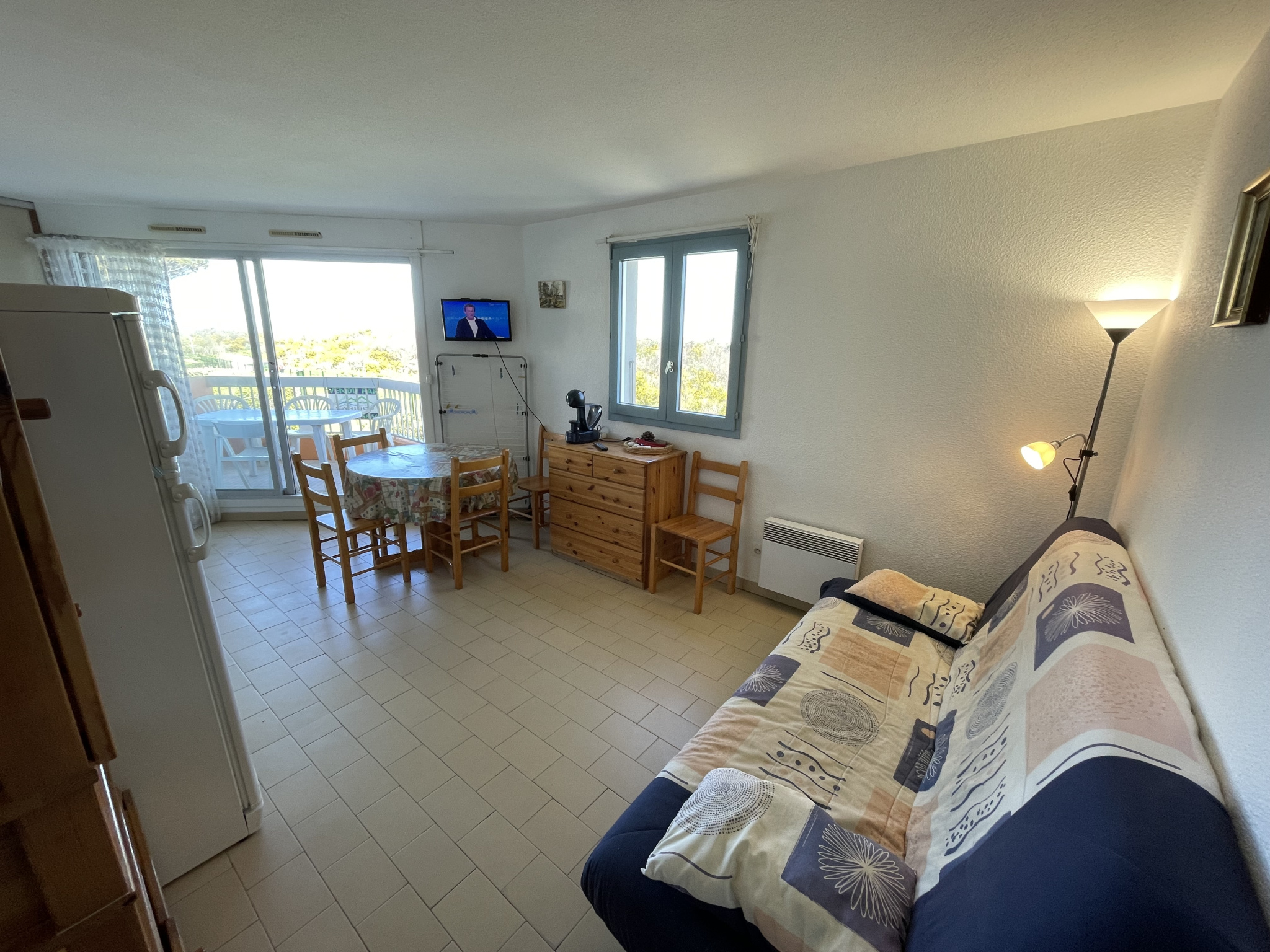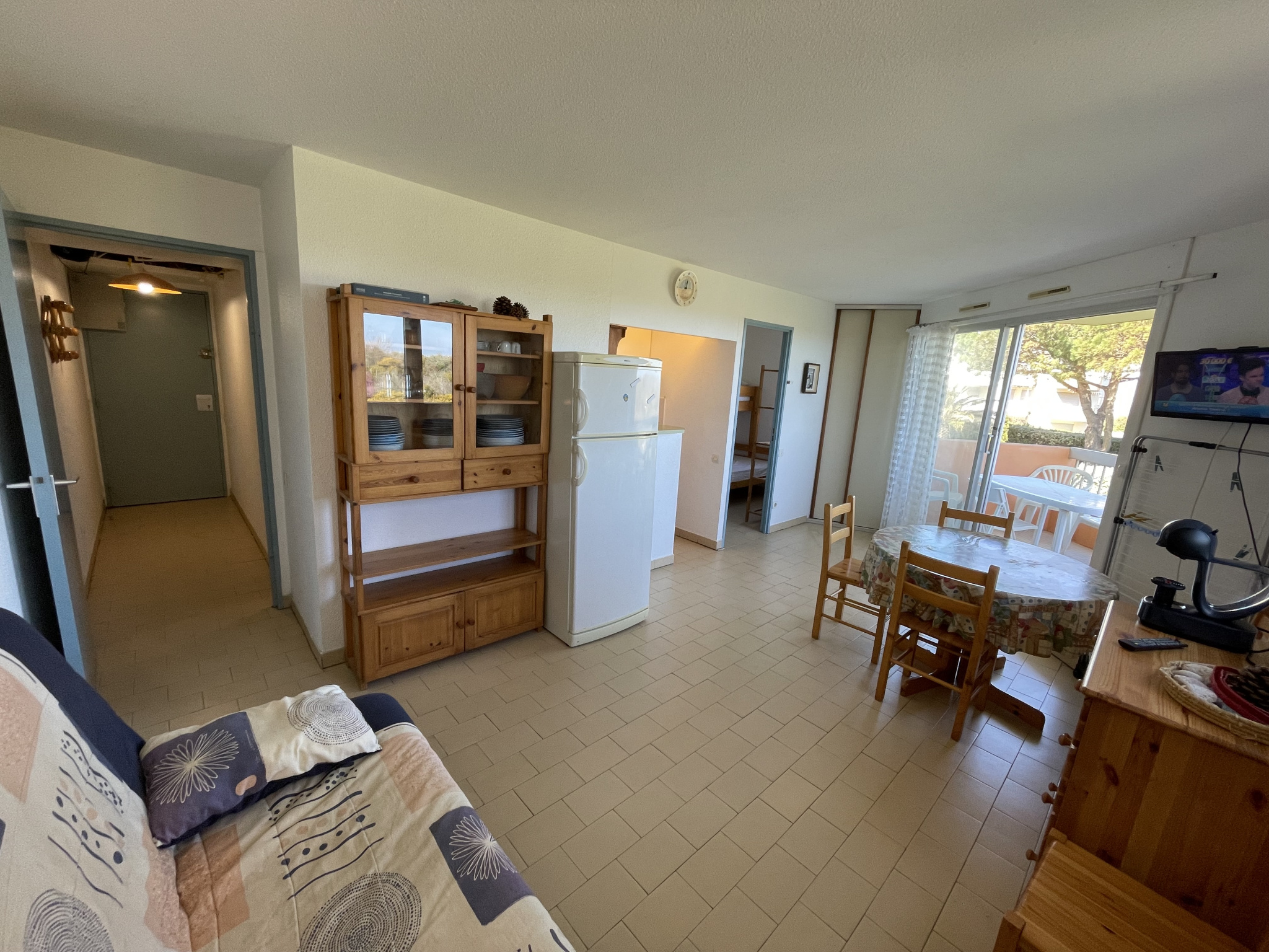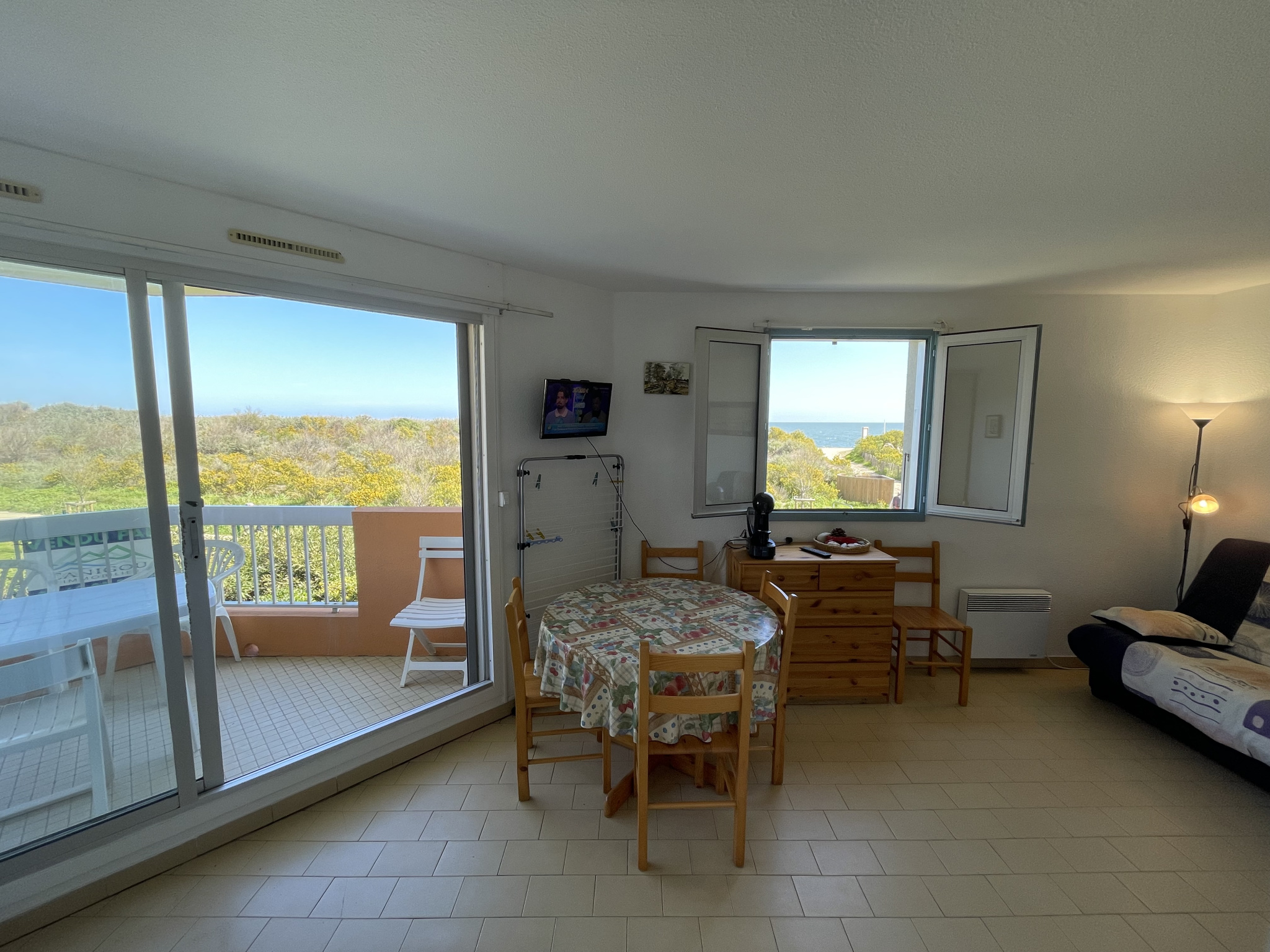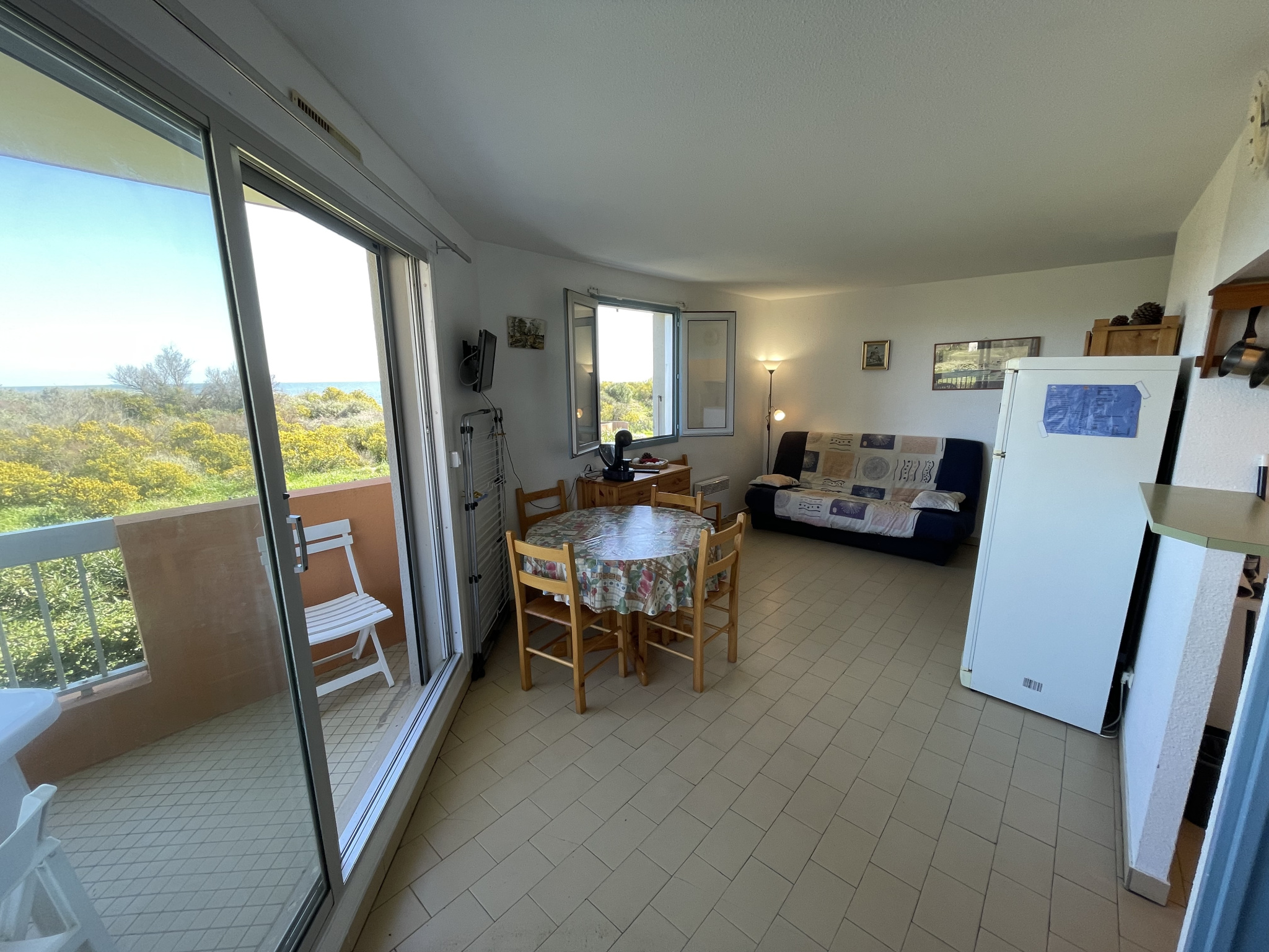 Dans résidence construite sur le sable avec piscine, espaces verts et parking sécurisé. En front de mer avec accès direct à la plage. Appartement 2 pièces, situé au 1er étage sur 2 faces avec loggia 5,50m2. Surface habitable (loi carrez) : 30,93m2. Expo : Est. Loggia couverte avec vue mer, espace verts et piscine de la résidence. Entrée, salle d’eau rénovée avec cabine douche, lave-linge et wc, une chambre avec 1 lit 140 et 1 lit 90 superposé, placard/penderie. Coin cuisine équipé, séjour avec canapé clic-clac, donnant sur la terrasse équipée avec salon de jardin (volet roulant électrique, volets catalan pvc). Logement lumineux, sans vis-à-vis, en bout de bâtiment directement face à la mer. Parking privatif sécurisé. Idéal vacances, très bon rapport locatif. Vendu en l’état meublé pour 4 à 5 pers.