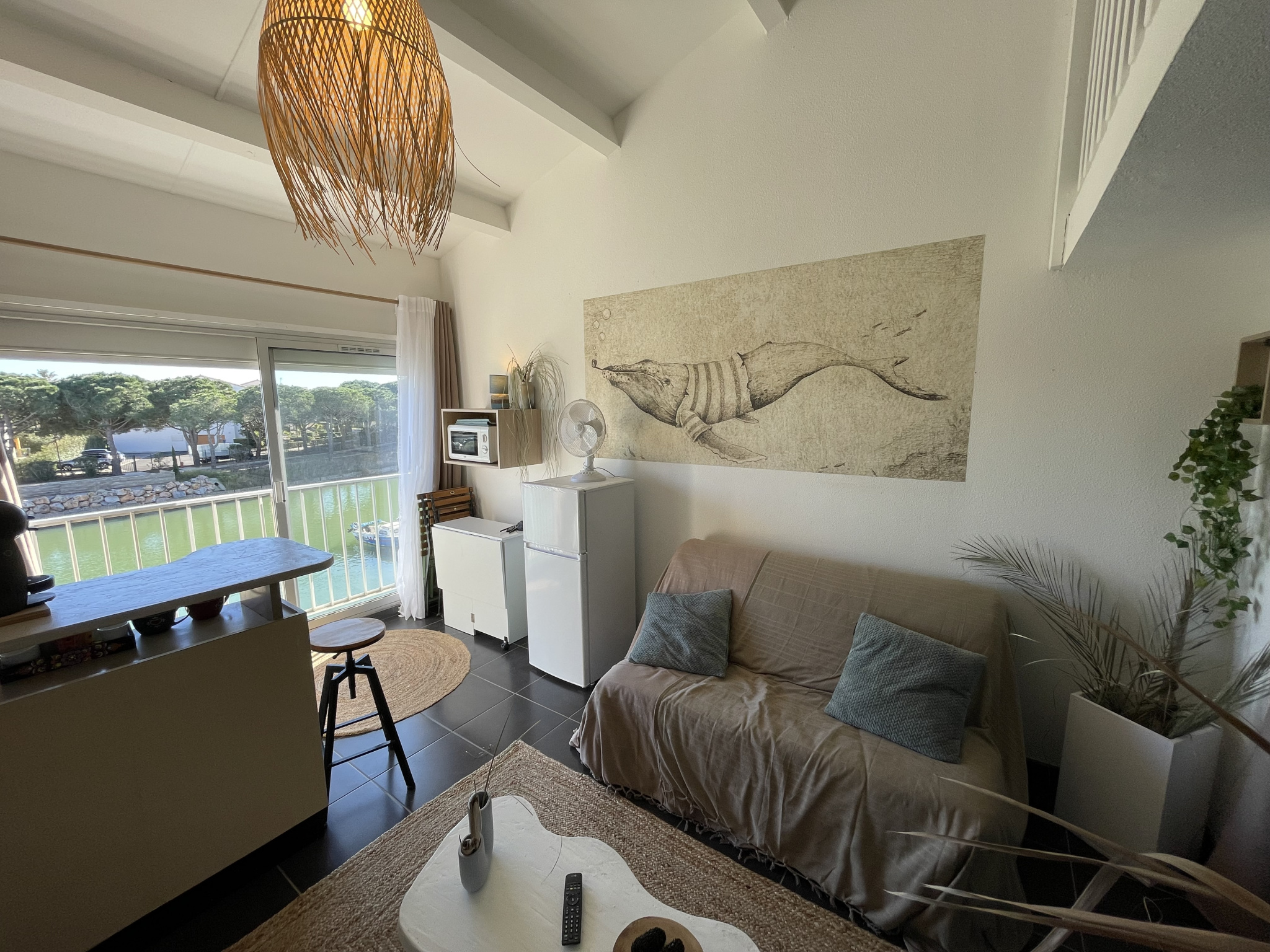 Env. 800m de la plage du pont tournant, proche du centre commercial des Capellans, dans résidence calme et sécurisée face à la marina. Bel appartement type Studio mezzanine au 2ème et dernier étage. Surface habitable d’env. 30m2. Appartement traversant, entièrement rénové en 2025. Expo : sud, très lumineux et sans vis-à-vis. Entrée au nord avec grand placard, salle d’eau avec wc et lave-linge, séjour coin-cuisine donnant directement sur les bateaux. Une chambre/mezzanine avec un lit 140, placard-penderie. Séjour avec cuisine équipée, canapé BZ, tv… Belle vue sur la marina et aperçu mer en fond. Parking privé sécurisé dans la résidence. Un havre de paix, pour les amoureux des bateaux et de la mer. Vendu en l'état meublé, équipé pour 4 personnes. Idéal investissement locatif ou pied à terre familial.