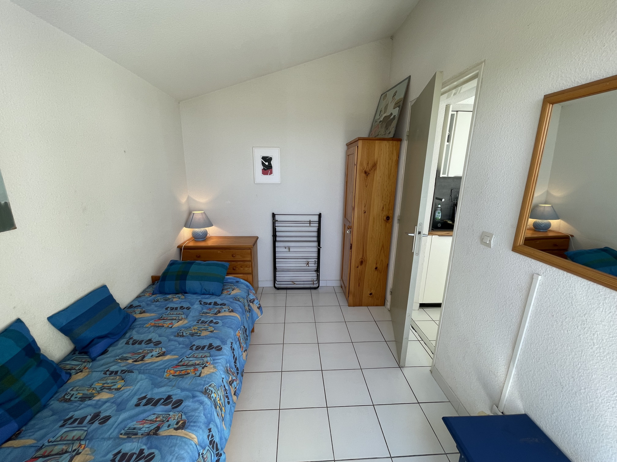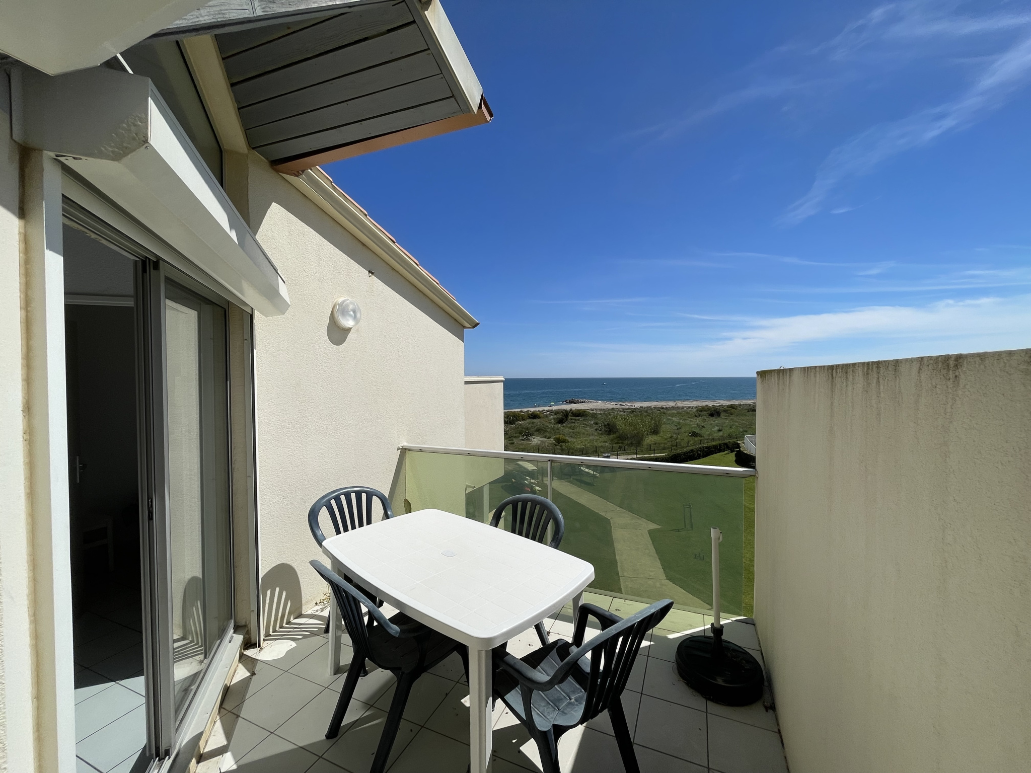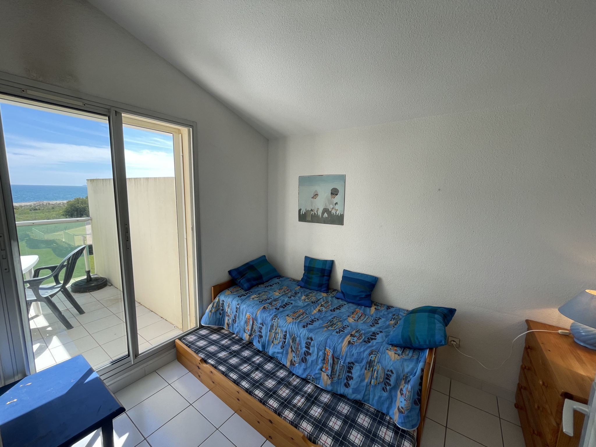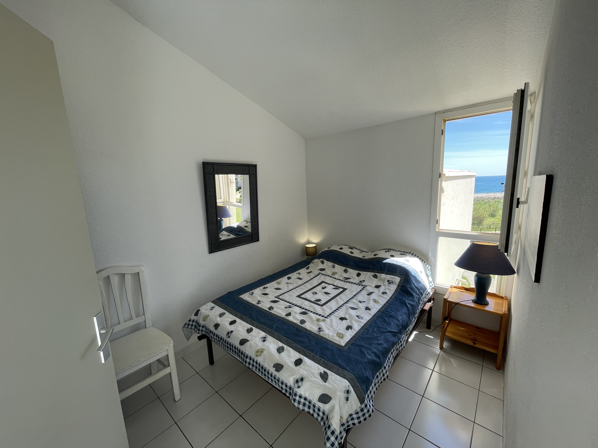 Dans résidence construite sur le sable avec ascenseur, piscine et parking sécurisé. En front de mer avec accès direct à la plage. Appart. 3 pièces Mezzanine sur 2 faces au 3ème et dernier étage face mer et piscine. Surface habitable : 38,73m2. Terrasse expo Sud/Est : 7,15m2. Vue mer, Albères, espaces verts et piscine. Entrée, salle d’eau, wc séparés. Une chambre (vue mer) avec 1 lit 140 et armoire/penderie, une 2ème chambre donnant sur la terrasse (vue mer) avec 1 canapé gigogne tiroir 2x80, commode et penderie. Petite mezzanine avec 1 canapé gigogne tiroir 1x90+1x80 et fenêtre. Séjour avec coin cuisine rénové et équipé en 2022, donnant sur la terrasse équipée avec salon de jardin (volets roulants électriques). Logement très lumineux, sans vis-à-vis. Parking intérieur sécurisé. DPE : (non soumis). Idéal vacances (très bon rapport locatif saisonnier) ou pour vivre à l’année.